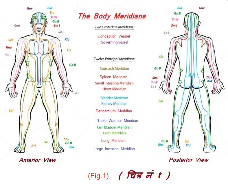 शताब्दीऔं देखि, मुख्य रूपमा भारत, जापान, चीन, नेपाल तथा अरु एशियाई देशमा मानव जीवनलाई जैव विद्युतिय घटनाका रूपमा लिइन्छ। अर्थात हाम्रो जीवनको अस्तित्व यहि जैविक उर्जाको कारणले भएको हो जसलाई ‘प्राण’ वा ‘चेतना’ भनिन्छ। हाम्रो शरीरमा यहि जैविक शक्तिको उपस्थितिले गर्दा हामी सास फेर्छौं, खाना पचाउं छौं, सोच छौं र बाँच छौं । यो उर्जालाई चीनमा ‘चि’ भनिन्छ| यो उर्जा बिशेष गरेर दुई किसिमको शक्ति मिलेर बनेको हुन्छन् | यिन (Negative) र याँग (Positive)| जबसम्म यी दुई शक्तिहरु पूर्ण रुपमा सन्तुलित हुन्छन्, हामी स्वस्थ र निरोगी हुन्छौं | जब यी दुइमा असन्तुलन पैदा हुन्छ हामी बिरामी हुन्छौं | यी शक्तिहरु विभिन्न बाटोहरुको माध्यमबाट हाम्रो शरीरका सबै महत्वपूर्ण अंग हुँदै प्रवाहित भै रहन्छन् । यी ‘रुट’ तथा च्यानलहरुलाई मेरिडियनहरु भनिन्छ (चित्र १.) | चिनियाँहरु तिनीहरुलाई ‘जिंग’ भन्छन् |